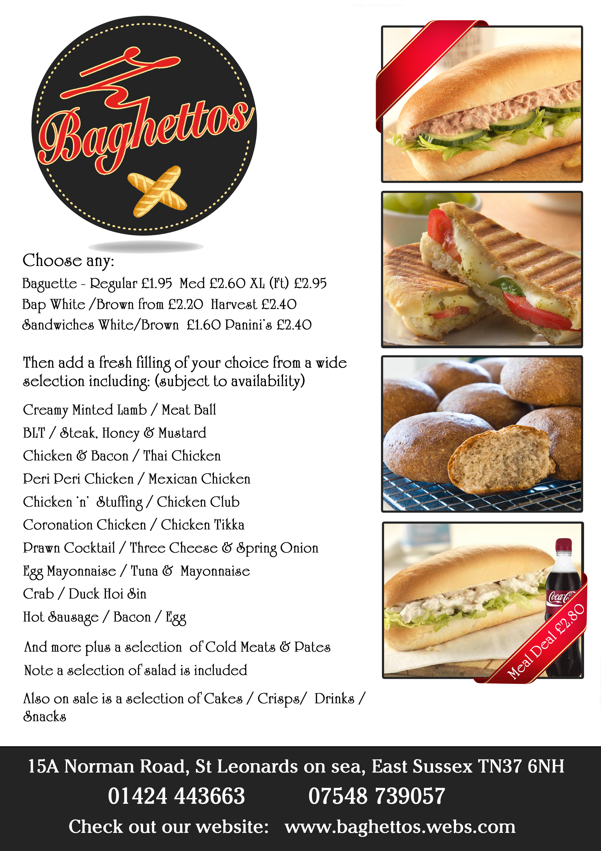 Baghettos is a family-owned Sandwich shop dedicated to serving freshly made baguettes and rolls to the St Leonards on sea community. With a passion for delicious and satisfying meals, our team is committed to providing exceptional service and a welcoming atmosphere for all our customers.